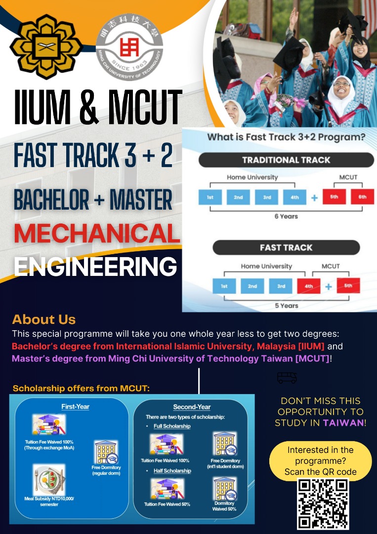 Experience the best of both worlds - IIUM's strong Islamic values and engineering excellence combined with MCUT Taiwan's technological innovation and research prowess.